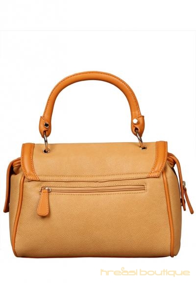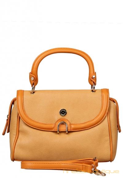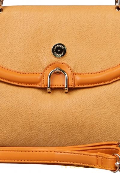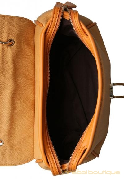 Tas warna apricot dari bahan PU leather. Zipper closure. Detail inner zippered pocket, gadget pouch dan kantong belakang. Dimensi: 29 x 10.5 x 23 cm, handle drop 12 cm, panjang adjustable strap maksimal 125 cm.